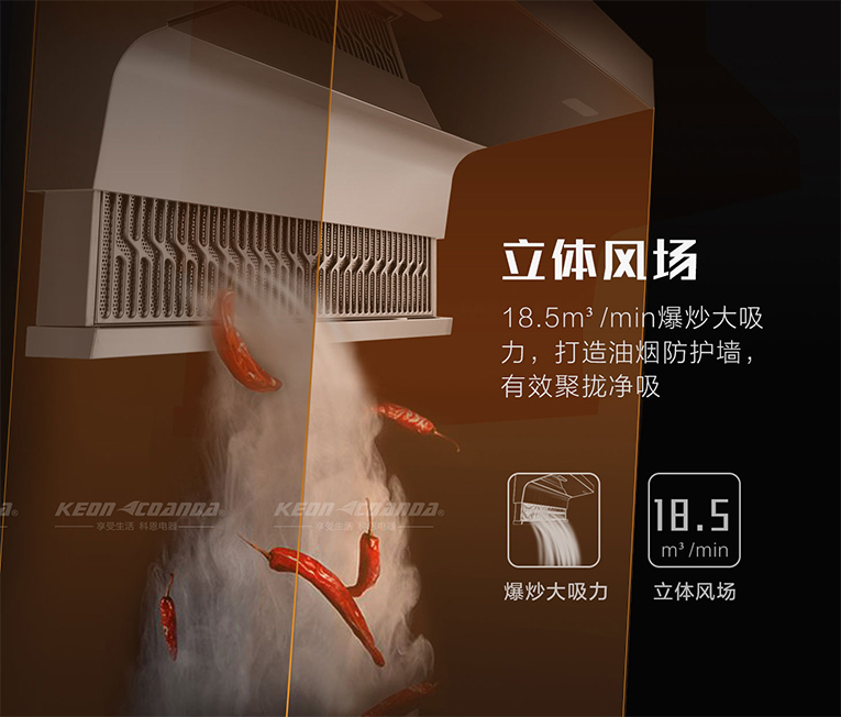 集成灶十大品牌、廚電行業十大品牌科恩電器智能體感操控煙機7510即將上市,符合現代人審美觀,在性能上升級,采用低位凈吸直排系統,下潛式進風口,18.5m3/min立體風場爆炒大吸力,速吸速排,有效聚攏凈吸,打造油煙防護墻。現代化自動升降科技感,同時采用智能體感揮手操控,抬手輕揮開關機,告別沾滿油污的手去按鍵。當然,能有如此出色的大吸力表現,最大核心還是采用了直流變頻系統,澎湃動力高速運轉,智能巡航剛柔并濟。