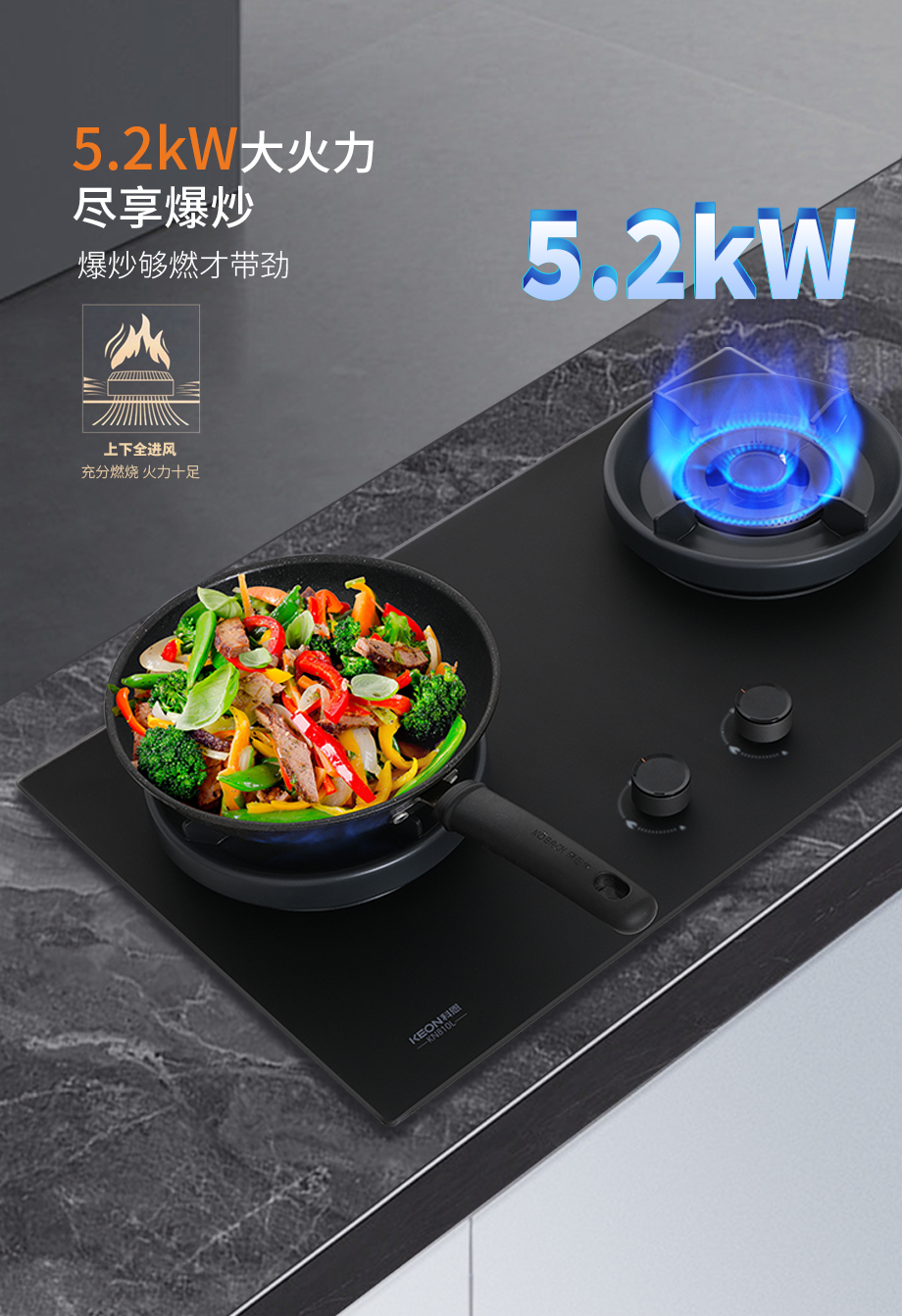 火力隨心,拿捏中式烹飪。5.2kW大火力鎖牢食材鮮香,170°寬域調火,慢燉蒸煮各得其所,環抱式聚能環防風聚熱,火力全開從容掌控各式烹飪。68% 一級熱效率,節能省氣不心疼。
